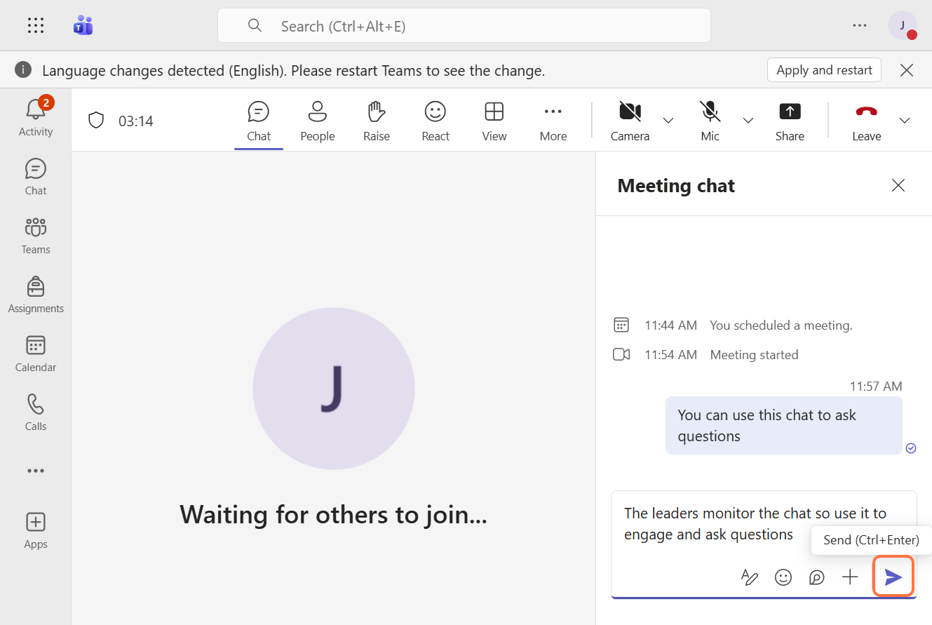 - If you have a question or need help, you can use the chat to ask the leaders questions.