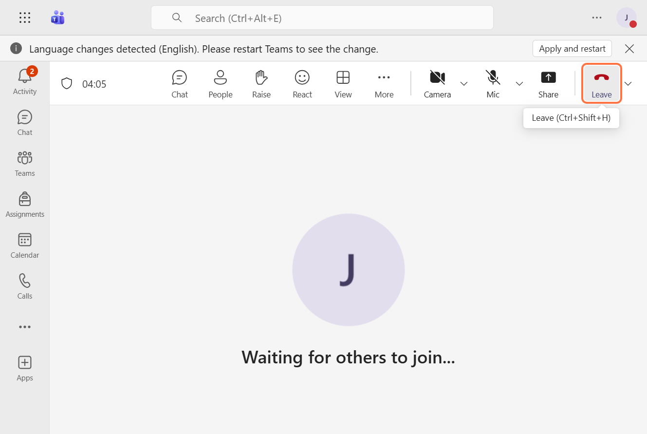- Once the session is over, to leave the meeting, click on the red phone icon in the top right corner of the screen, and click leave.
